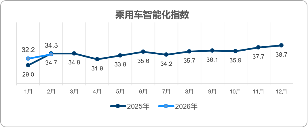 【联合发布】2026年2月乘用车智能化指数为34.3