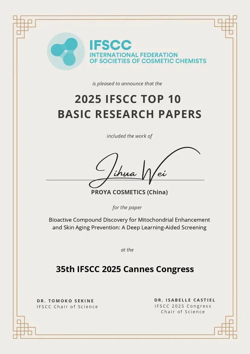 (珀莱雅荣获“2025IFSCC十大基础研究奖”)