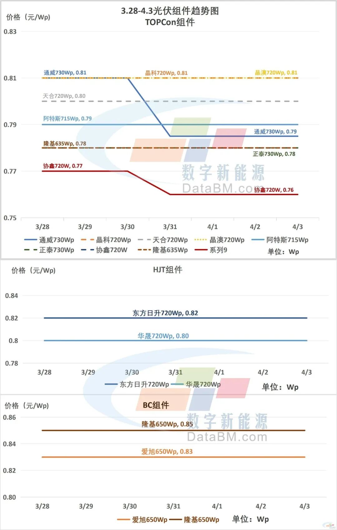 TOPCon组件:价格区间为0.73-0.83元/W。