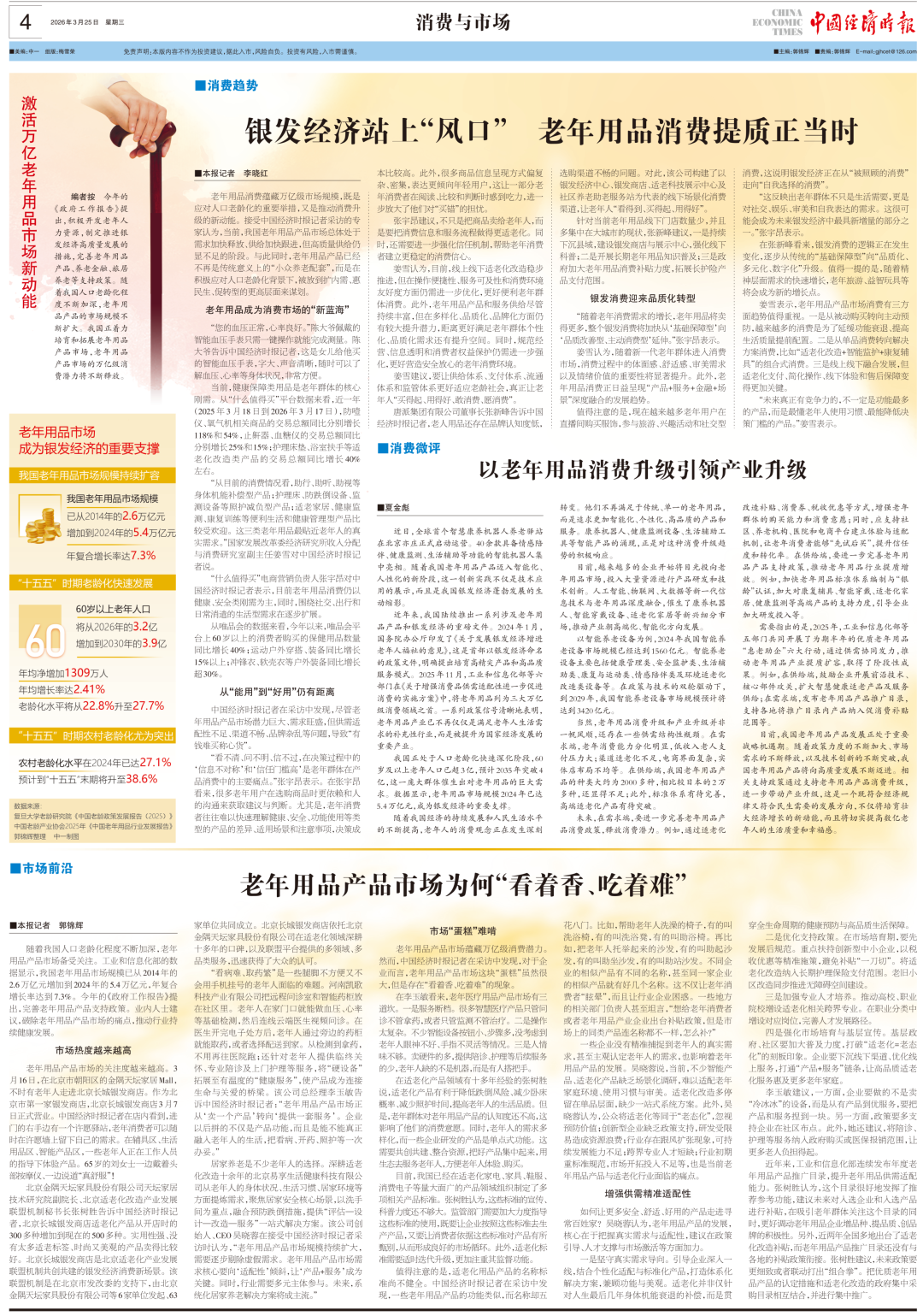 “随着老年消费需求的增长,老年用品将卖得更多,整个银发消费将加快从‘基础保障型’向‘品质改善型、主动消费型’延伸。”张宇昂表示。
