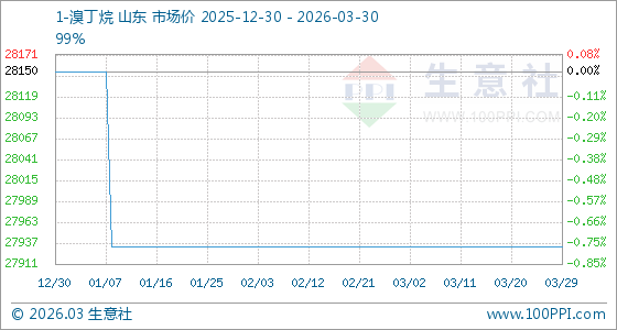 3月30日,生意社1-溴丁烷基准价为27933.33元/吨,与本月初持平。