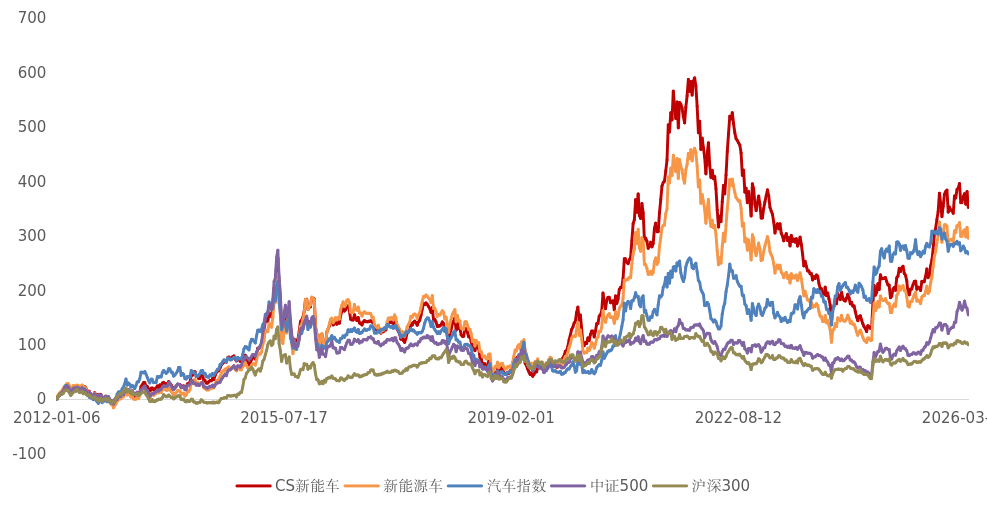 基期以来(2011.12.31-2026.03.23),该指数区间涨跌幅329.98%、区间年化收益率11.14%、年化夏普比率0.50,表现均优于同期国证新能源车指数和中证全指汽车指数。立足产业高质量发展新起点,抢抓全球电动化、智能化红利窗口期,投资者或可借道新能源车ETF招商(159183)一站式布局整车制造、动力电池、核心零部件等新能源汽车全产业链优质龙头标的,助力投资者把握电动化替代与出海扩张双重红利。
