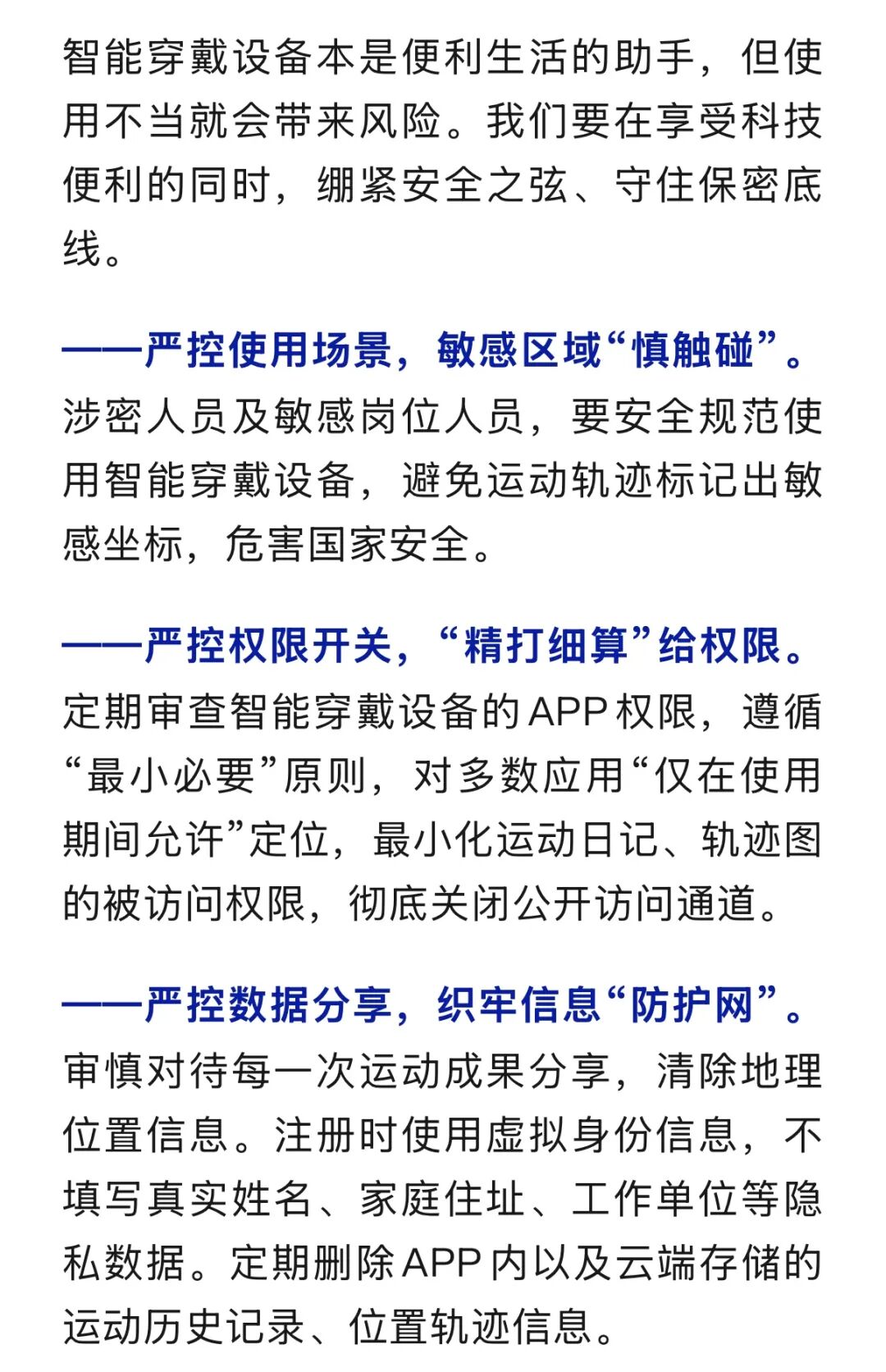 近日,某国发生一起因智能穿戴设备导致的军事机密泄露事件,引发全球关注。当时该国某重要军事装备正在执行任务,一名军官跑步时佩戴的智能运动手表持续记录并公开了高精度GPS数据,致使该军事装备实时位置等重要敏感信息泄露,给该国国防安全造成难以