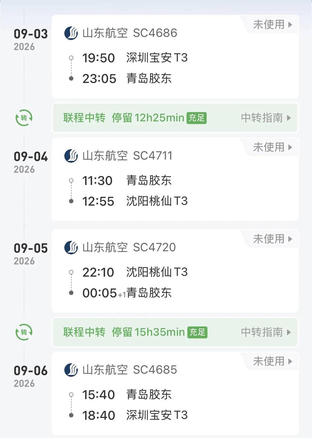 记者从林女士的行程单看到,其出行覆盖深圳宝安、青岛胶东、沈阳桃仙等多个枢纽机场,涉及山东航空、深圳航空、海南航空等多家航司,“前后半年的出行计划,一次性全订了,”林女士笑着说,“第一次这么早把票买齐。”不过林女士也表示,想回避燃油上涨提前囤票就要承担有可能因时间冲突无法出行的风险,“基本都是在自己可控范围之内,也不是盲目的囤票。”