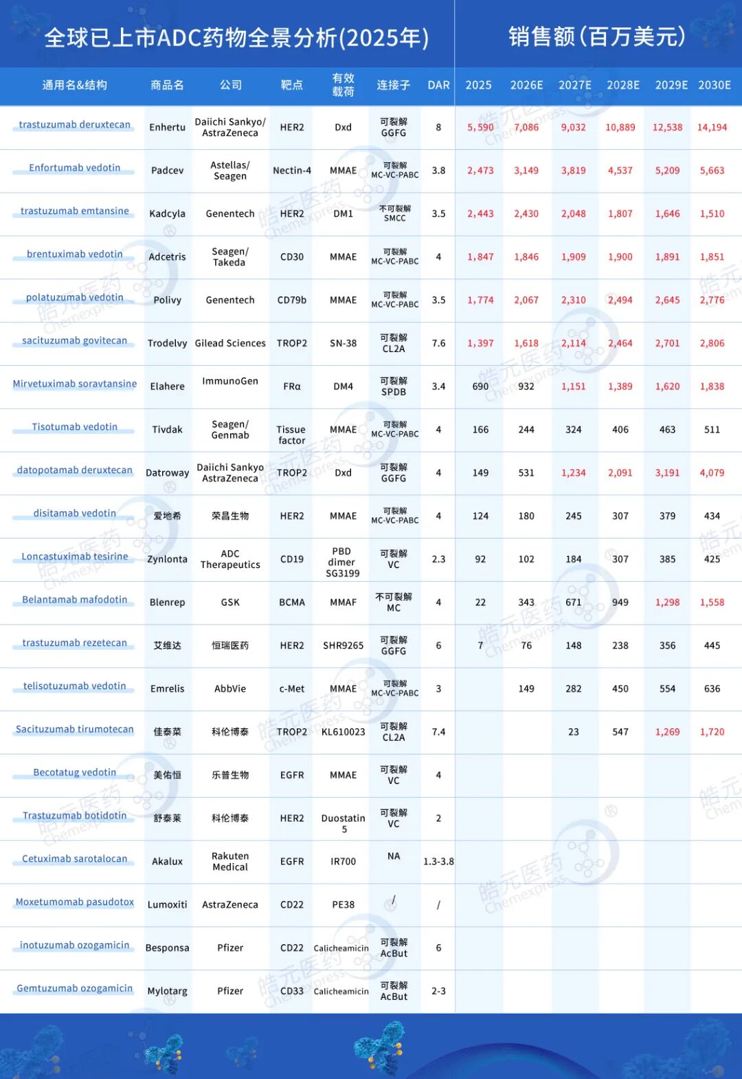 【皓元·行研】全球已上市ADC药物市场深度解析:2025年规模达168亿美元,2030年有望突破400亿美元